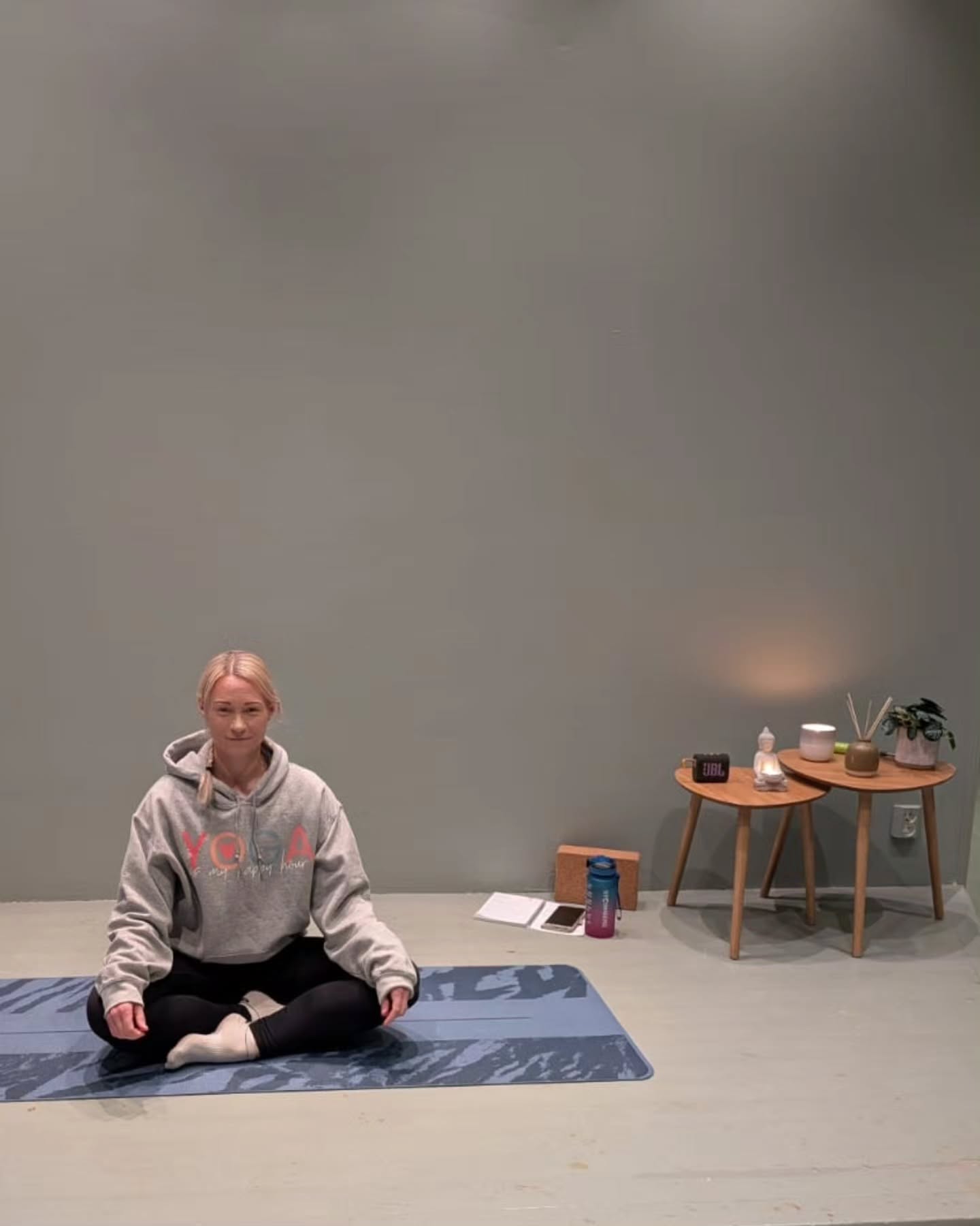 Vi börjar lugnt. Du får komma ner i kroppen, hitta andetaget och släppa lite av dagen bakom dig.