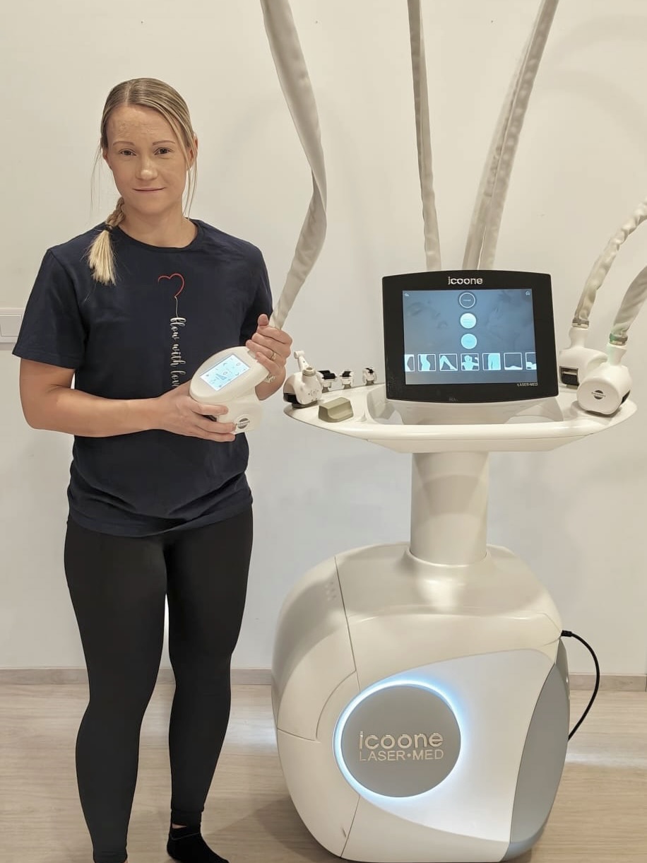 Icoone® Laser Med är en medicinskt certifierad behandling som kombinerar mekanisk mikrostimulering (Roboderm®), medicinsk laser och LED-ljus. Den jobbar djupt och specifikt i vävnaden, men på ett kontrollerat sätt som gör den effektiv utan att vara “för tuff” – även i känsliga eller smärtande områden.